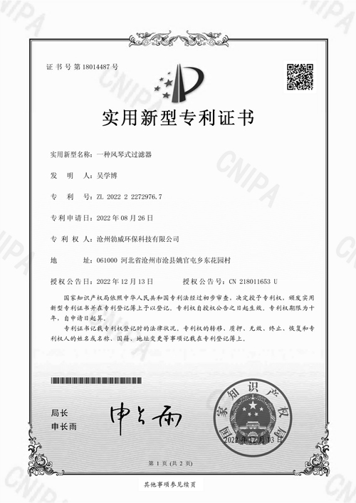 • 風琴式過濾器專利